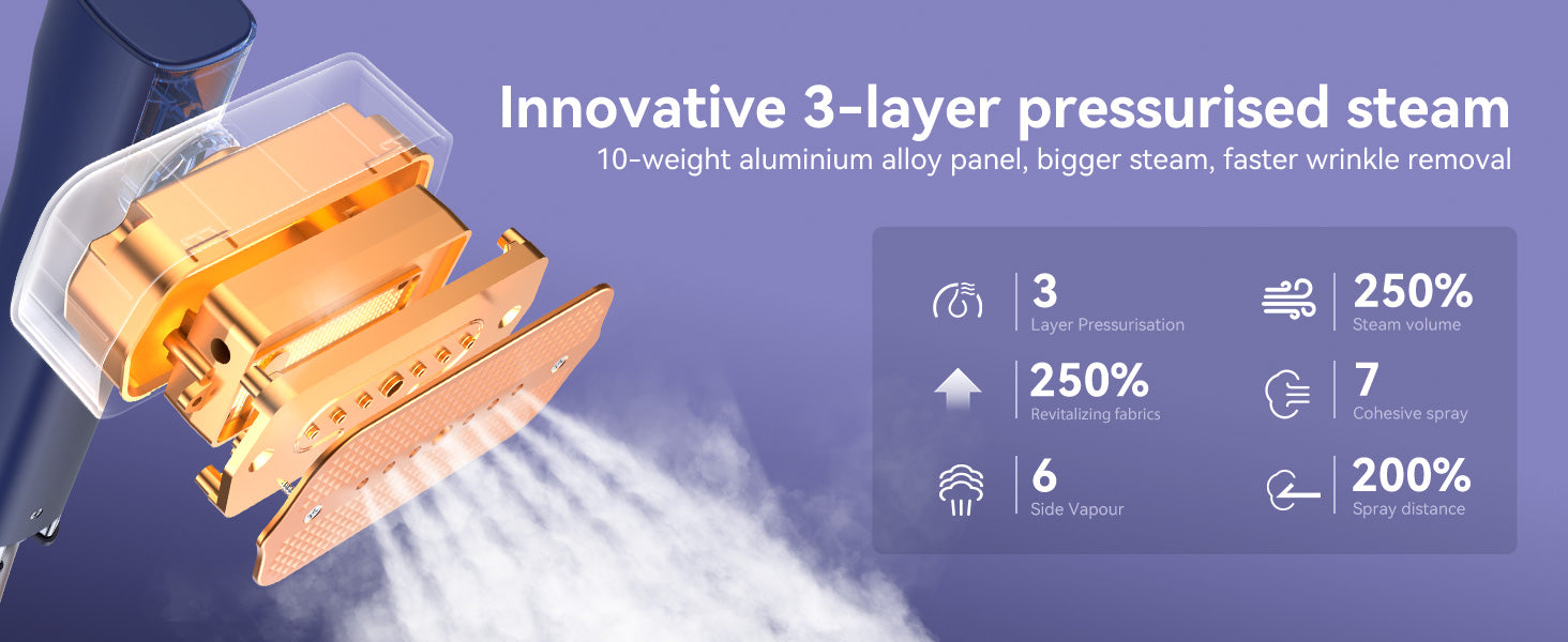 Product Innovation: The innovative three-layer cast panel design makes the steam finer and more even, significantly enhancing ironing results while extending the usage time of the water tank. Whether for home use or travel, this travel steamer easily meets various ironing needs.