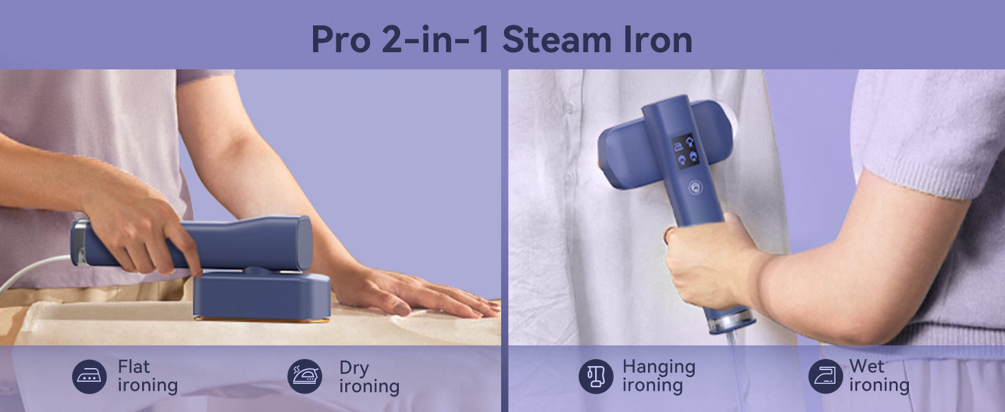 2-in-1 Iron & Steamer for Clothes: Sundu 2-in-1 travel steam iron adopts a 90° rotatable design, which can be used for flat ironing and vertical steam ironing, dry ironing or wet ironing. This flexible design can meet various ironing scenarios and meet different needs.