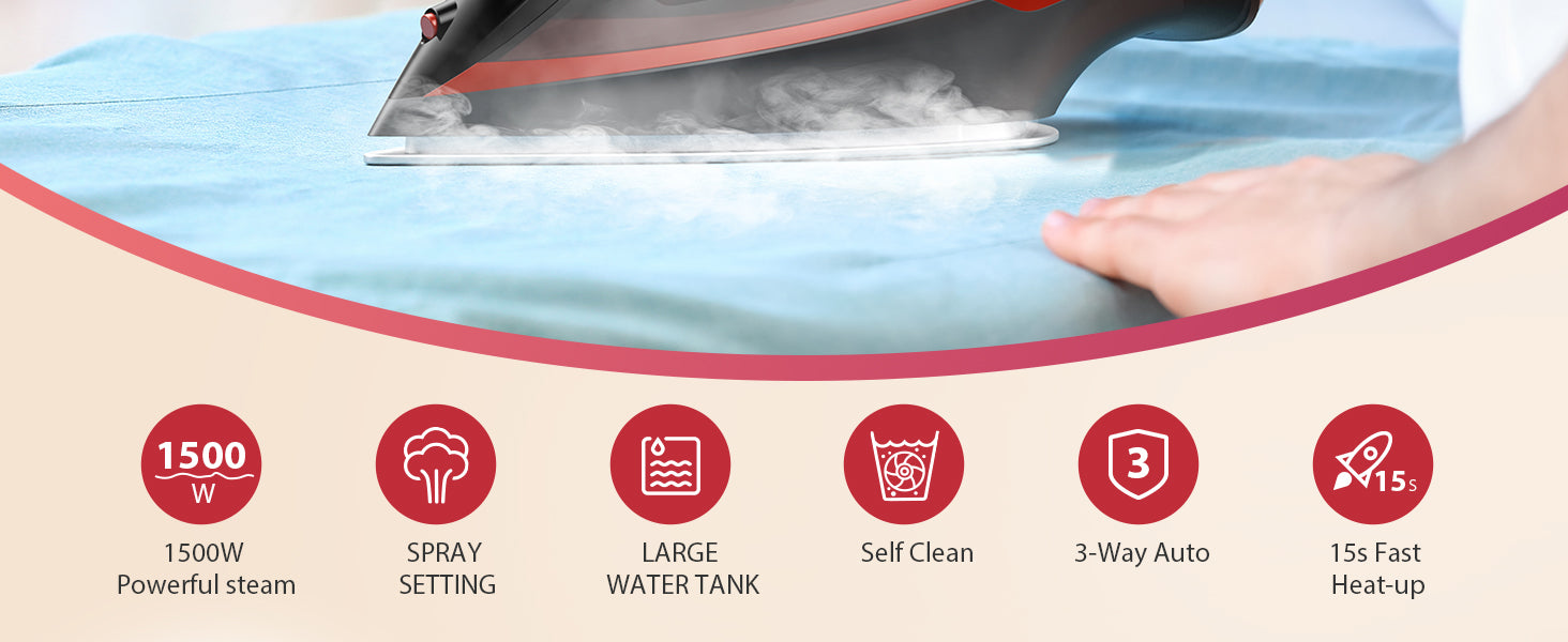 Rapid Heating: Our Professional Steam Iron 1500W heats in just 15 seconds! Stainless Steel Soleplate – True position axial holes direct the maximum amount of steam. Use it as a handheld steamer or with your ironing board.