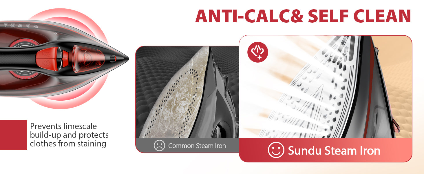 ANTI-CALC& SELF CLEAN: Coupled with self-clean and anti-calc functions, it maintains peak performance and limescale-free operation.Large Capacity Water Tank:The 11.84oz (350ml) tank means less refilling and more ironing.