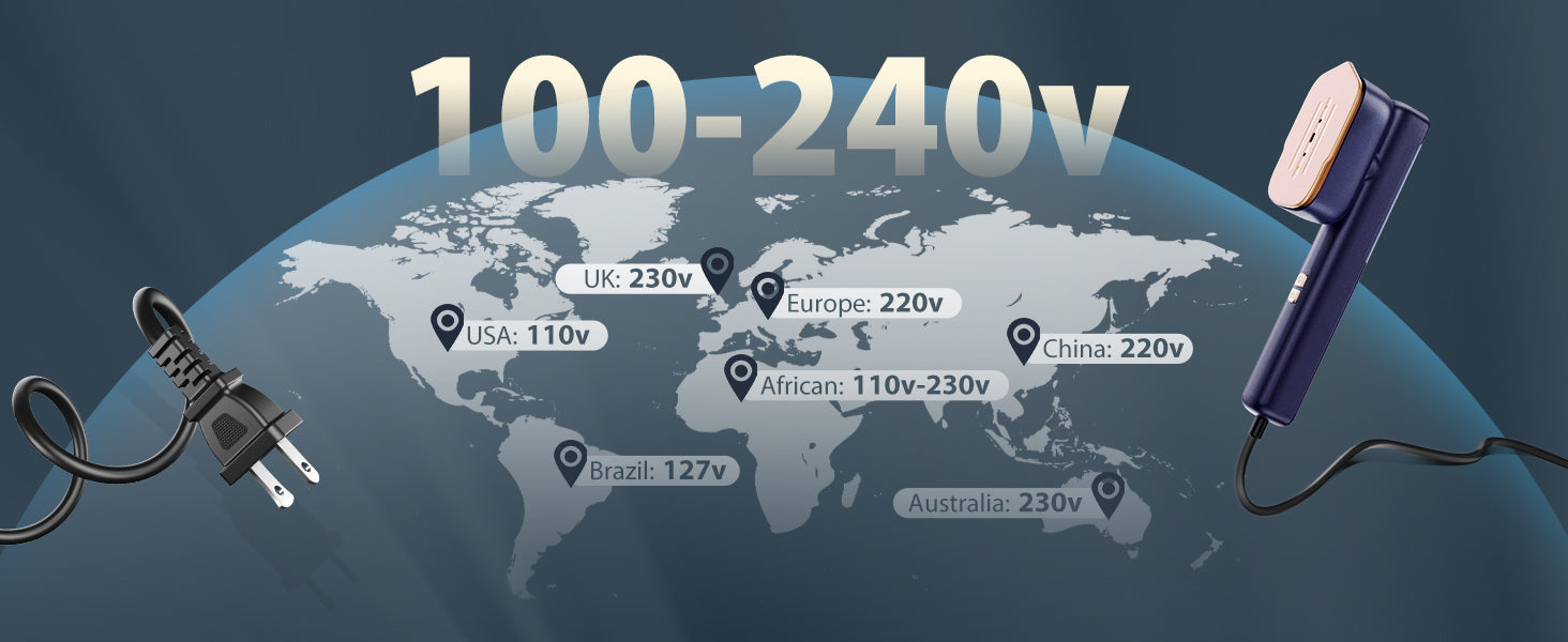 Suitable for All Fabrics: Whether at home or on the go, this portable steamer is perfect for ironing a variety of clothes. It works well on all fabrics including T-shirts, shirts, coats, wool, denim, curtains, furniture, toys, silk, lace, and more. Designed for use in 110-120V countries and regions like the US, Canada, and Japan.